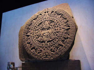 среди них знаменитый "Камень пятого Солнца" или "Ацтекский календарь".