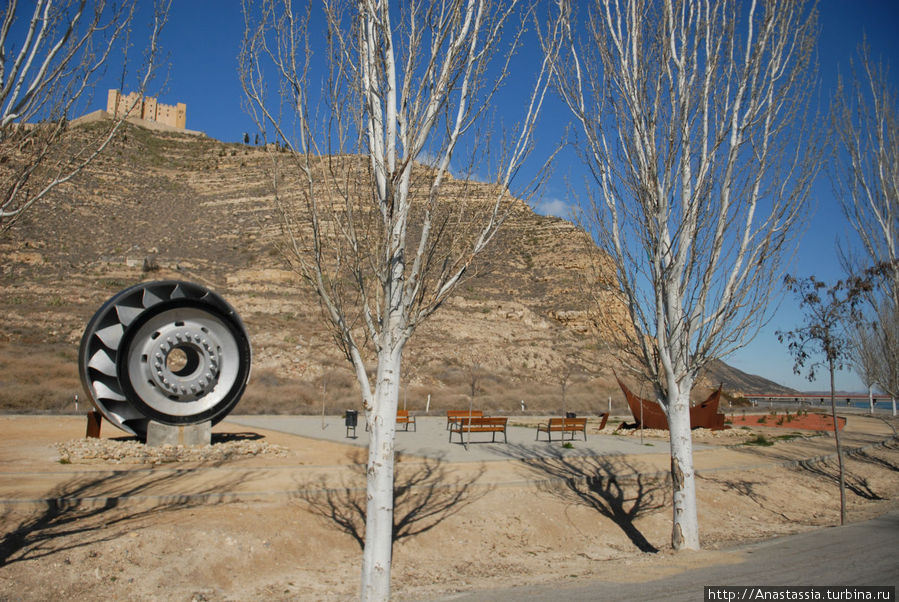 А еще мне понравилось, что в Мекинса и его окрестностях очень много лавочек, есть они и на мосту через озеро, есть они и у подножия горы с негостеприимным замком и удивительно стильным монументом прямо у озера, состоящего из лодки и крупной деьали турбинного двигателя с располагающейся на Верхнем озере ГРЭС.
