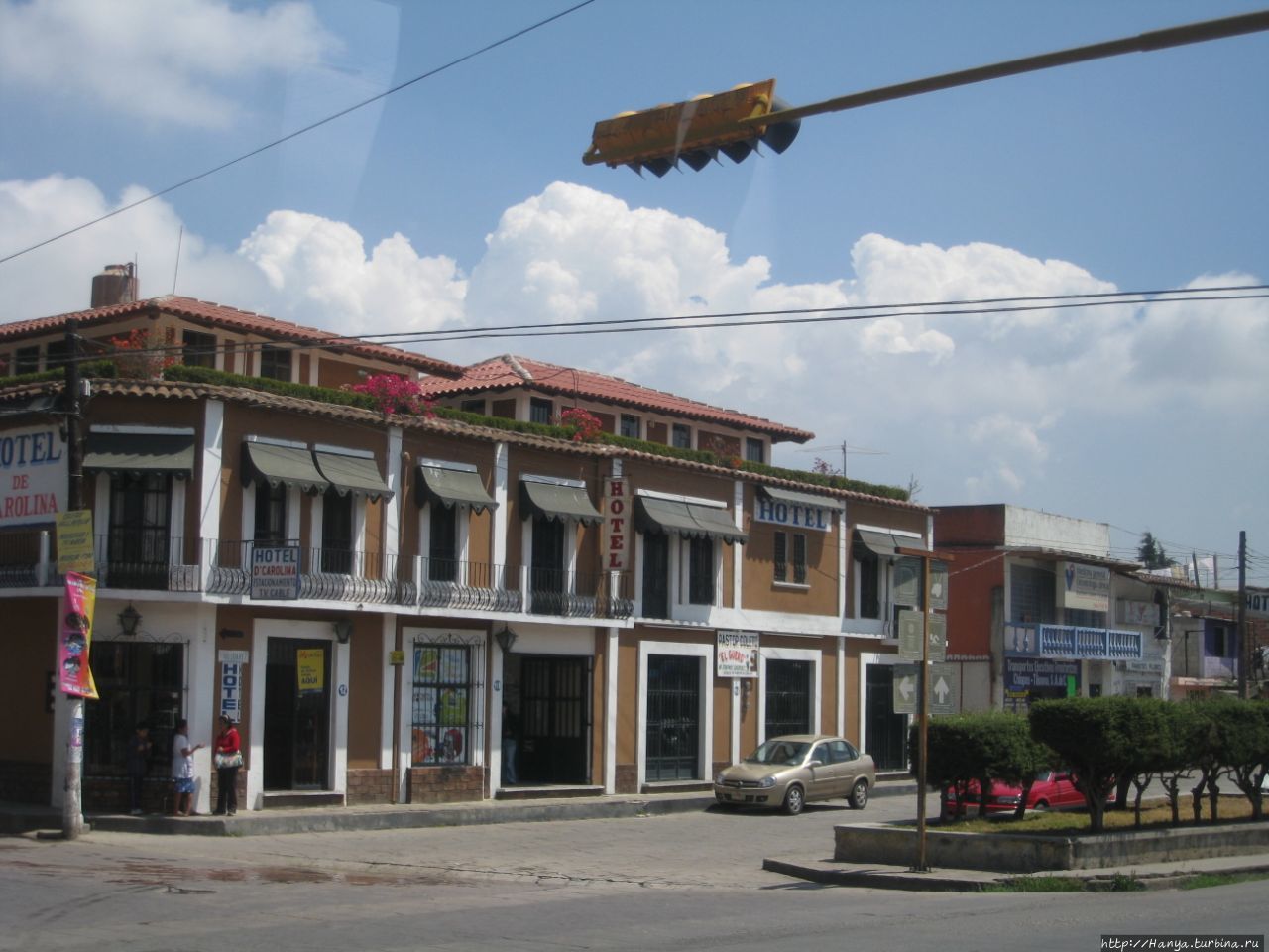 Сан Хуан Чамула. Чем богаты – тому и рады. Ч.82), через 1,5 часа. Спускаемся с холодных вершин Лакандонской сьерры и прощаемся с горами, больше их на нашем пути не будет. Снова серпантин дороги ведет нас вперед, изредка прерываясь «лежащими полицейскими» в населенных пунктах. Города удивляют обилием отелей, и мы недоумеваем, зачем их здесь столько.