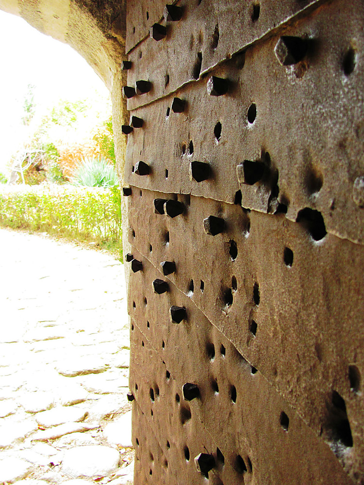 Нижняя часть внешних стен совсем глухая, этим монастырь напоминает средневековую крепость. Мощные входные ворота снабжены небольшой сторожевой башней, что тоже подтверждает необходимость в оброне в лихие лета.