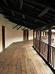 Красивый внутренний двор с церковью Богородицы посередине окружают жилые корпуса с мрачноватыми деревянными галереями, где находятся игуменские покои, монашеские кельи и трапезная, помещения для складов.