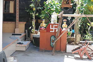 В индуизме свастичный символ является воплощением вечной сменяемости жизни-перерождения, "круговорота сансары", а также движение от микрокосмоса к макрокосмосу. Буддисты, кроме того, считают свастику олицетворением Закона Будды, которому подвластно всё сущее. Более того, левая и правая свастики соответственно воплощают богиню Кали-Майю (Луна, мать Будды) и бога Ганешу (Солнце, отец Будды).