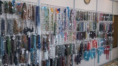 Стенки здесь были увешены разнокалиберными бусами, причем и размер бусинок и их оттенки тоже были совершенно разные.