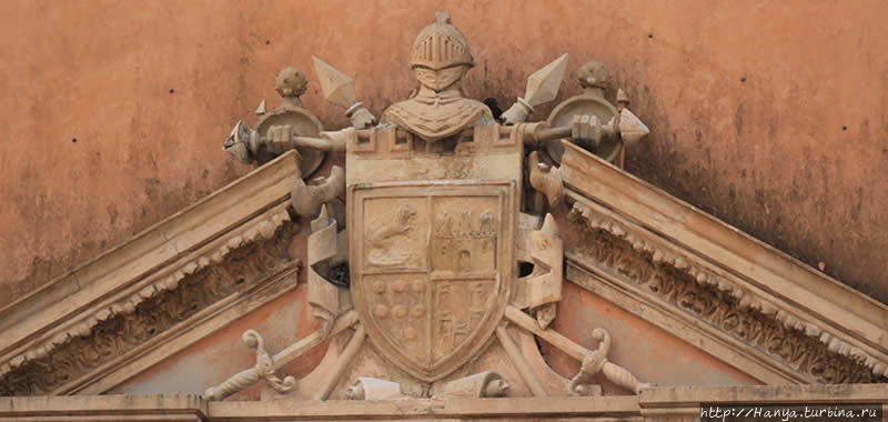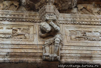Приведу слова исследователей: «На фасаде видно изобилие человеческих фигур, которые выполнены в виде рельефов. В дополнение к бородатым воинам, которые сопровождают щит дома, а также голов херувимов, которые обильно наблюдаются в капителях, фризах и дверных рамах, можно увидеть и другие фигуры, которые, возможно, соответствуют изображениям как архитектора, который спроектировал обитель, так и завоевателя, его жены, а также близких людей».