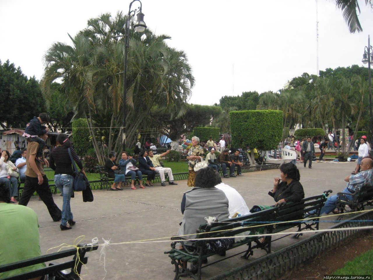 Идем через садик в центре, здесь уже вовсю идет торговля мексиканскими сувенирами, вышитым текстилем, едой. Безмятежно сидят на возвышении желающие почистить обувь.