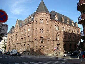 Немецкие строители и архитекторы стремились подчеркнуть незыблемость границ Германии. Господствующим стилем стал немецкий неоромантизм и неоренессанс. Основным строительным материалом был гранит и темный песчаник. Одно из самых массивных зданий квартала – главпочтамт (1911 год) построено из красного песчаника, привезенного с Вогезов.
