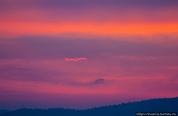 День не длится вечно. Есть места на земле заполярные, где день растягивается и длится всё лето или зиму, в зависимости от полюса, но мы живём в широтах несколько других — у нас день днём, ночь ночью. Солнце славно потрудилось за день, оно устало и уже спряталось за горизонт, оставив в небе потрясающе красивое цветопредставление.