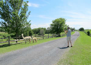 Ферма, занимающаяся разведением этих животных, является самой большой не только в Вермонте, но и в целой Новой Англии. Насколько я поняла, климат наших краев очень им этим красоткам, родом из противоположного полушария, где они живут в высокогорьях Анд. Так вот, на вермонтской ферме недалеко от канадских границ, на зелёных лугах, в окружении виноградников, пасутся не коровы или овцы, а именно альпаки. Ферма на своей веб-странице предлагает всем желающим прогулку по её полям и общение с альпаками, не ставя никаких ограничений. Это предложение звучало очень заманчиво и не воспользоваться им мы не могли. Но, подъехав к ферме, мы обнаружили неожиданное препятствие — ворота для въезда оказались закрытыми. Вокруг — ни одного человека, но альпаки присутствуют.