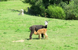 Это и понятно, потому как главная причина их выращивания на ферме — это их шерсть. Их регулярно стригут и шерсть идёт на продажу. И летом они щеголяют в летней одежде в стиле "мини". И в самом деле, не в шубе же летом ходить!!Альпаки, хоть и полу-домашние, но дистанцию сохраняли. Поэтому, за многими пришлось наблюдать издалека. Но это не нарушило контакта и радости восприятия. И так удалось увидеть массу интересного. Смешанная расцветка, словно художник нарисовал