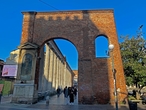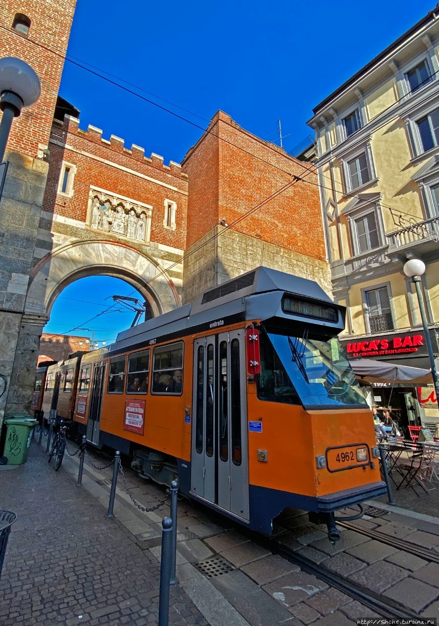 После трамвай выезжает прямо через арку красивых Ворот Тичинезе, но они все же на полторы тысячи лет моложе (созданы в начале 19 века).