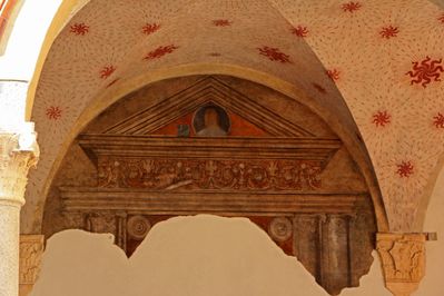 Местами можно только найти остатки настенных росписей во внутренних дворах замка.