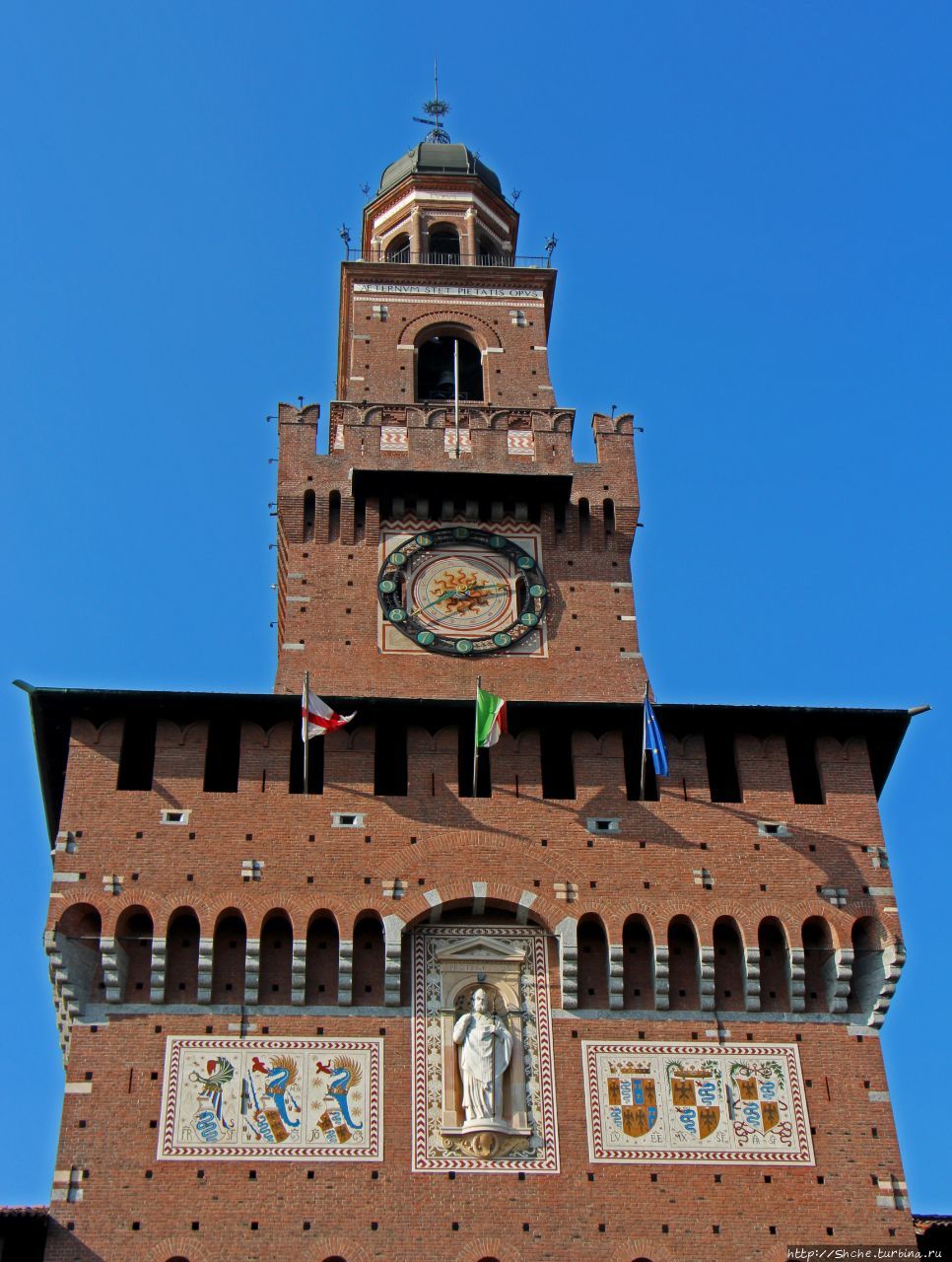 Забавный факт — именно облик крепости Сфорца взяли за образец миланские архитекторы, работавшие над Московским Кремлём.
