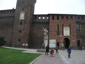 Но наша цель не покупки и мы отправляемся в Замок Сфорца, изначально возведённом в XIV в и вновь отстроенном Франческо Сфорца в середине XV века.