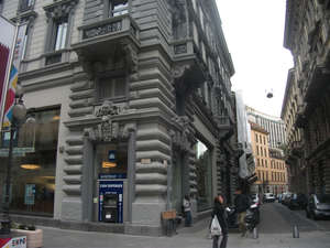 Совсем рядом находится театр Ла-Скала, здание снаружи совсем неприметное. Но говорят так оно и было задумано, главное не внешняя оболочка, а то, что внутри.