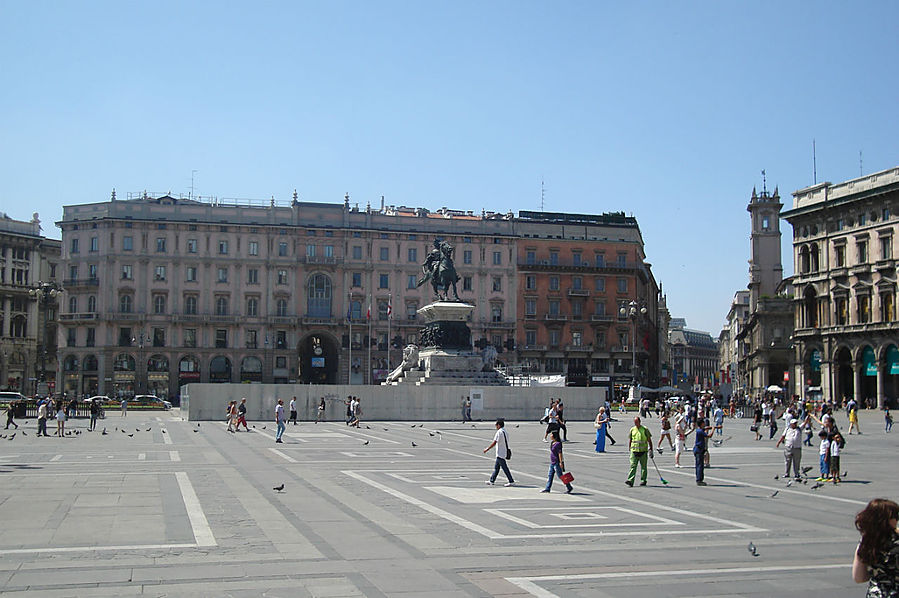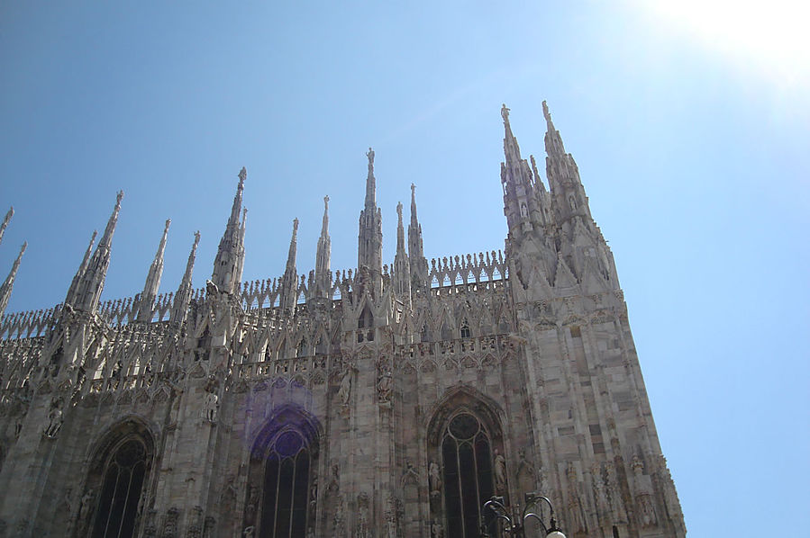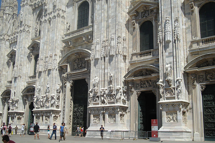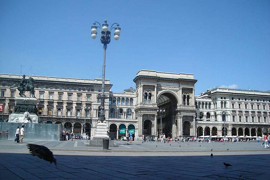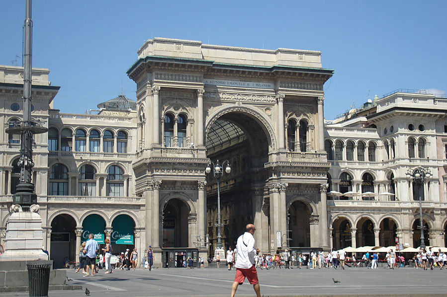Около 9 утра я был уже на Милано Чентрале. Духота вокзала заставила побыстрее сдать рюкзак и отправиться гулять по Милану. У меня был целый день чтобы покалабродить здесь, но больше я так не делать не стал бы. Да простят меня любители итальянских городов, в которых я не был, но тут вообще делать не чего. Я просто гулял часами выписывая окружности по центру города, стараясь не попадать на одни и те же улицы. Карта города показывала какие то достопримечательности, но в основном это были какие то некрасивые высушенные церквушки или дома не совсем понятного предназначения. Архитектура напрочь никакая. Я наверно слишком зажравшийся путешественник, но тут все просто. Я коренной петербуржец и мне есть с чем сравнивать. Отец был прав, когда сказал "нашел с чем сравнивать", ведь Питер строили топовые архитекторы того времени. Но наверно Милан таки один из самых не интересных городов в Европе. Везде распродажи, одно шмотье, везде, повсюду тряпки, мишура какая — то. Один большой рынок. И я конечно же пришел в самый центр рынка — Duomo di Milano, к знаменитому собору, одной из двух главных достопримечательностей города. Вторая стоит по соседству — Галерея Витторио-Эммануэле II.