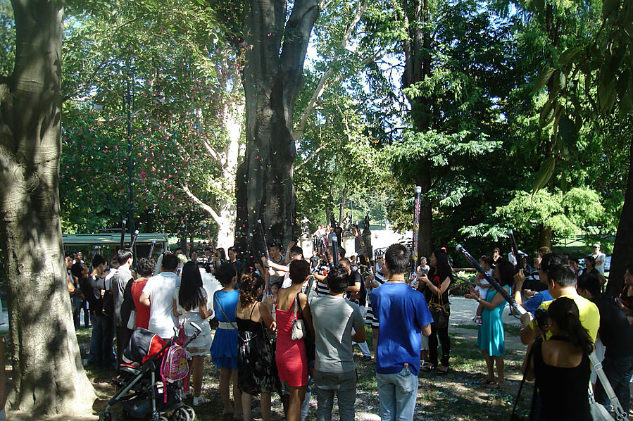 Это была двойная азиатская свадьба. Мне нравиться думать, что Вьетнамская. Забавная процессия проходила под аккомпанемент местных уличных барабанщиков. Темп боя задавал чернокожий музыкант. Около десятка барабанщиков, сидевших вокруг подключались к его мотивам. При этом они никак не относились к свадебной процессии. Но все вместе смотрелось и слушалось очень забавно.