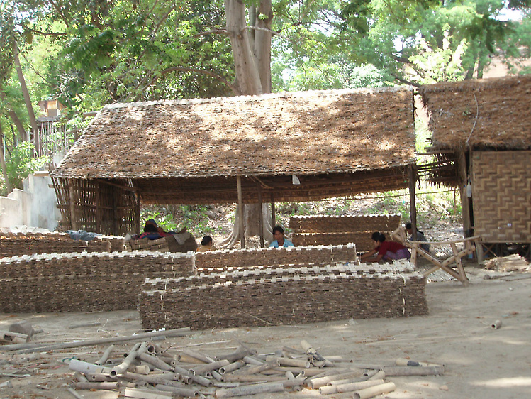 Небольшой монастырь с постройками и ступами. Местная деревенька Мингун тянется вдоль реки здесь же и повседневный труд жителей .