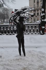 Изначально автор планировал создать скульптуру девочки, которая ждет на остановке троллейбус, но ужасная трагедия изменила замысел художника. В итоге получилась босоногая девочка в мокром платье под порванным от града зонтом в руках. Скульптура имеет свою легенду — прикоснувшись к девушке с зонтиком можно оградить себя от несчастного случая.