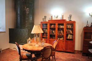 Замковая библиотека. Тут хранились не только книги нескольких поколений семьи, но и архивы, документы. В этой комнате реконструирован интерьер 1930-х годов.