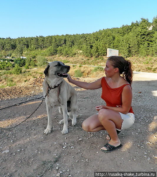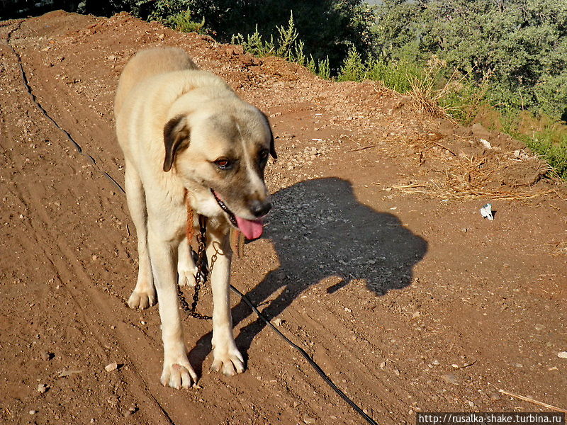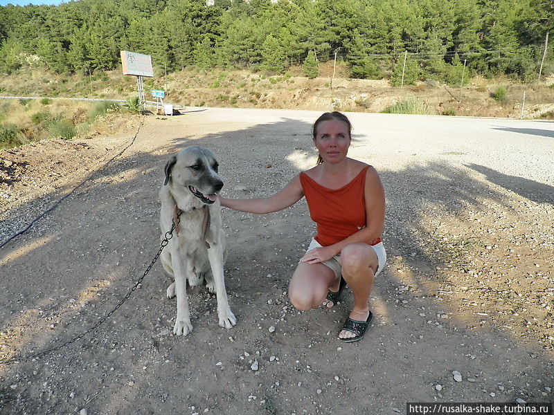 Пока весь автобус скупал магнитики и тарелочки я познакомилась со сторожем этого торгово-туалетного комплекса. Ну как может сторожить эта добродушная псина, которая всем подряд дает лапу?!))
