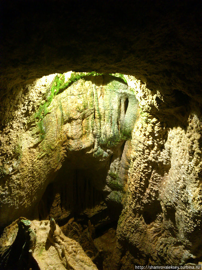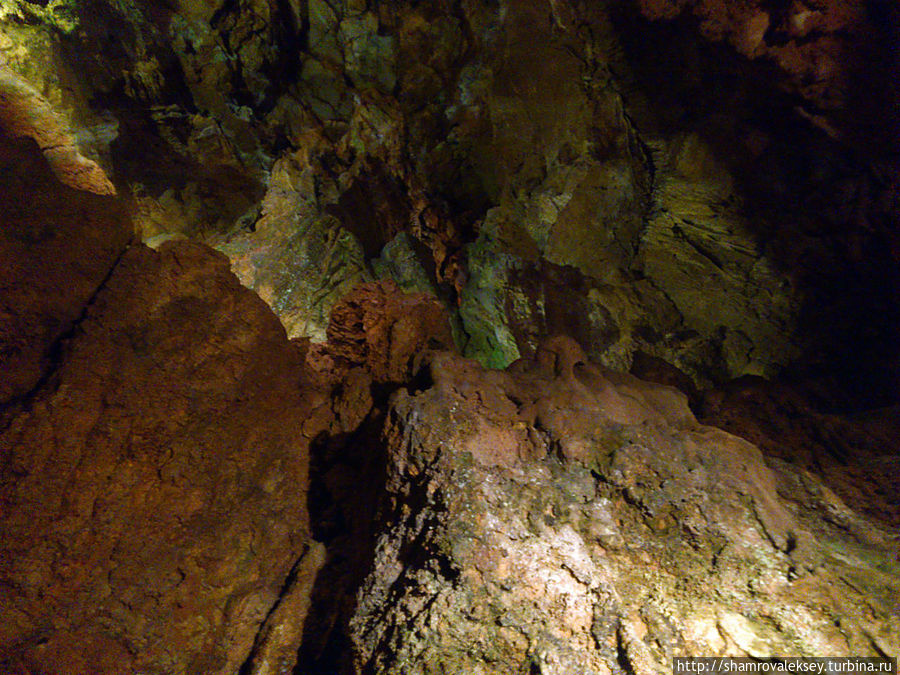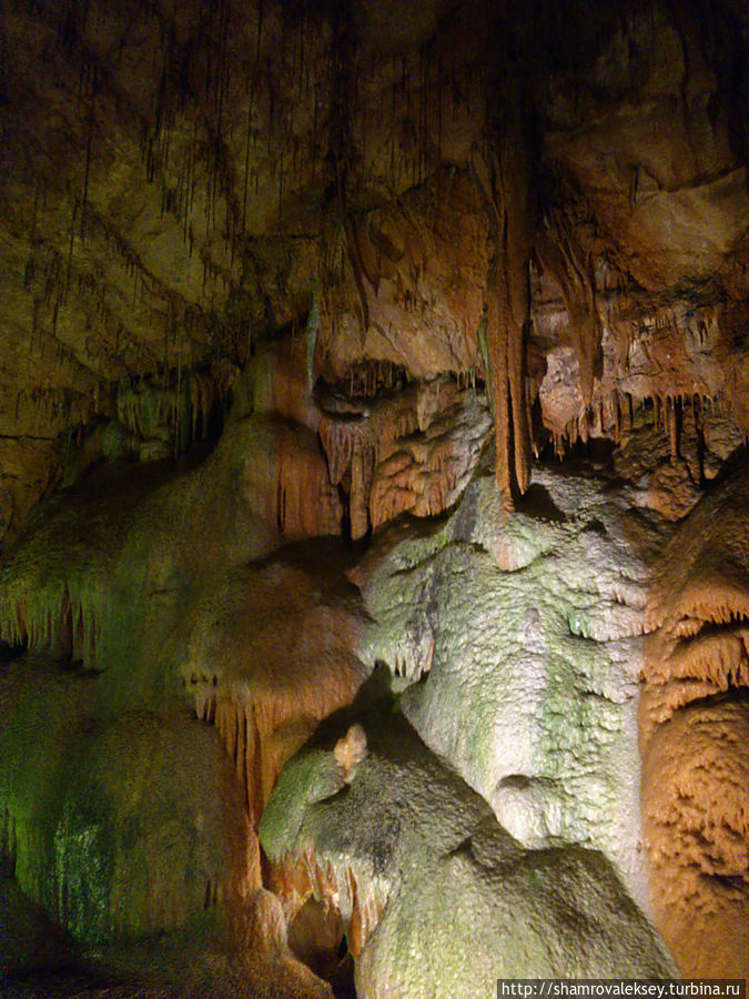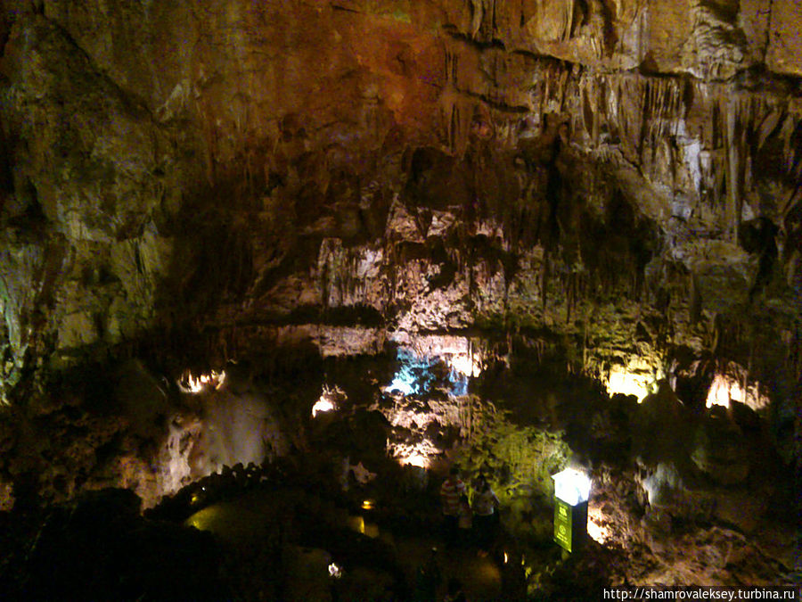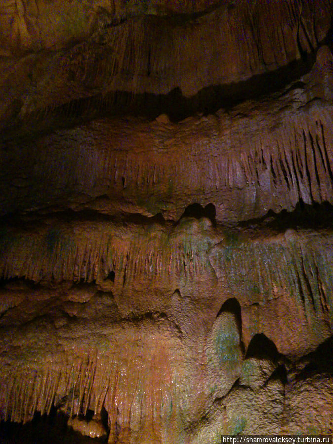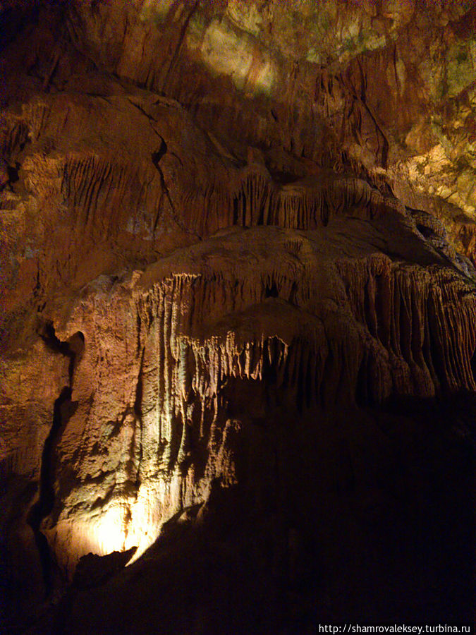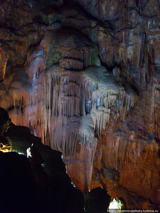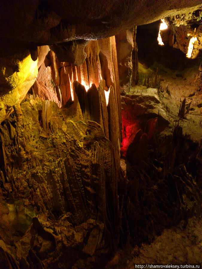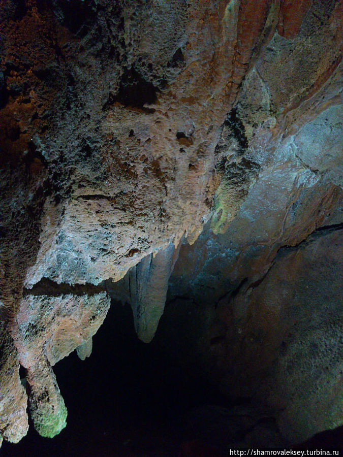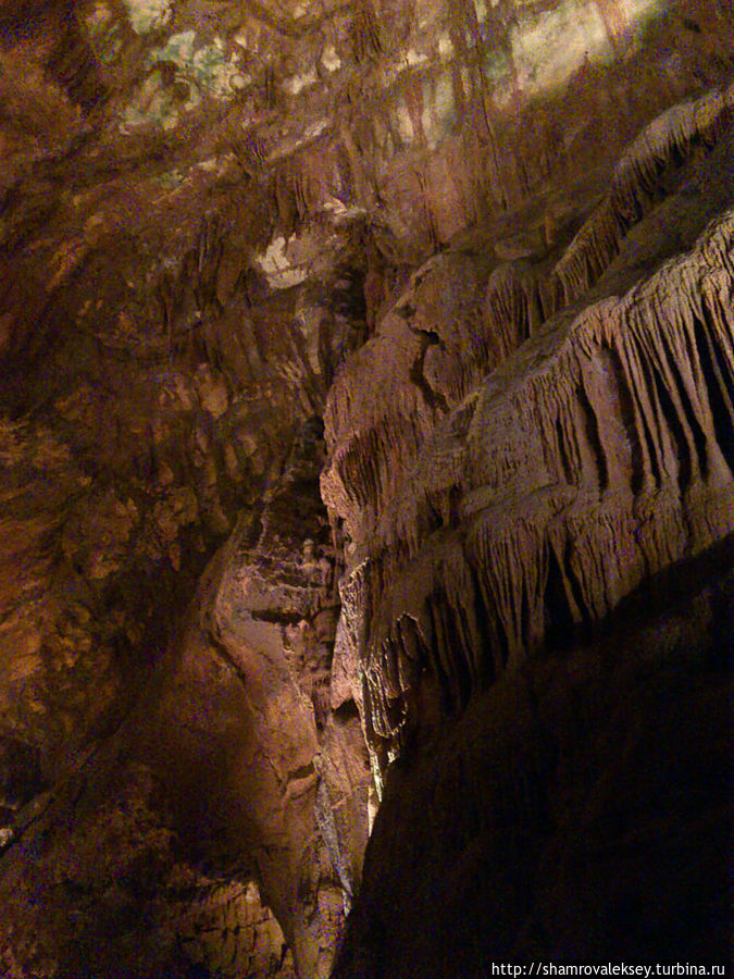 Эти красивые пещеры признанные в результате общепортугальского опроса одним из семи природных чудес Португалии опускаются в глубь Воздушных гор Мира де Айре на 110 метров. Величественное творение природы было открыто в 1947 году пастухами из одноимённого городка Мира де Айре у которых постоянно пропадали овцы. Во время очередного поиска они открыли провал вёдший в глубокую пещеру, стены и своды которой были заполнены огромным количеством разнообразных по форме и размерам сталактитов и сталагмитов. Медленно растущие друг навстречу другу минеральные отложения известняка встречали меня на всём протяжении спуска по серпантину искусственных лестниц устроенных в теле пещер. Разноцветная подсветка пещер добавляет волшебства и красочности природным структурам и фонтанам устроенным человеком в нижней части пещер ставшим истоком Чёрной реки. Общая разведанная длина пещер составляет более 10 километров, я же смог увидеть только малую часть пещер открытых для посещения с 1974 года.