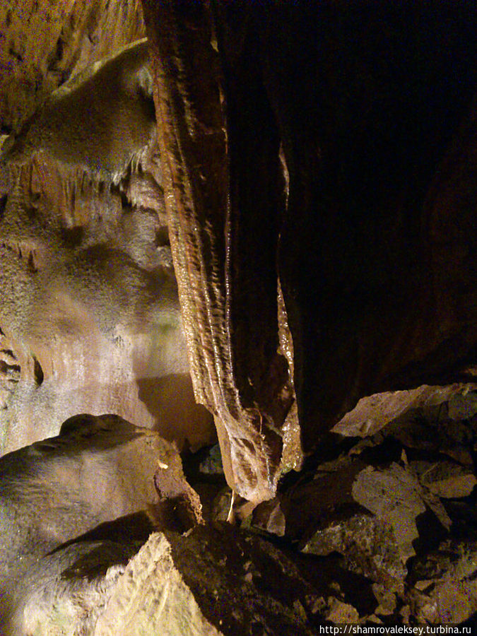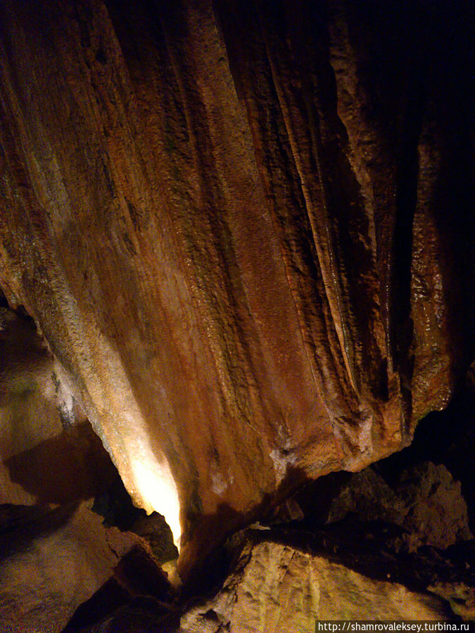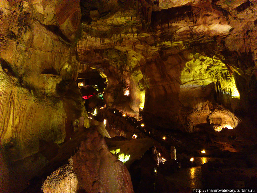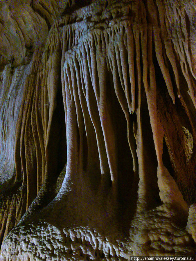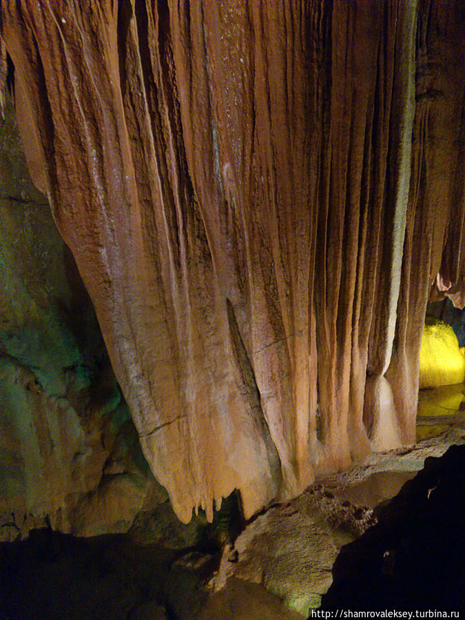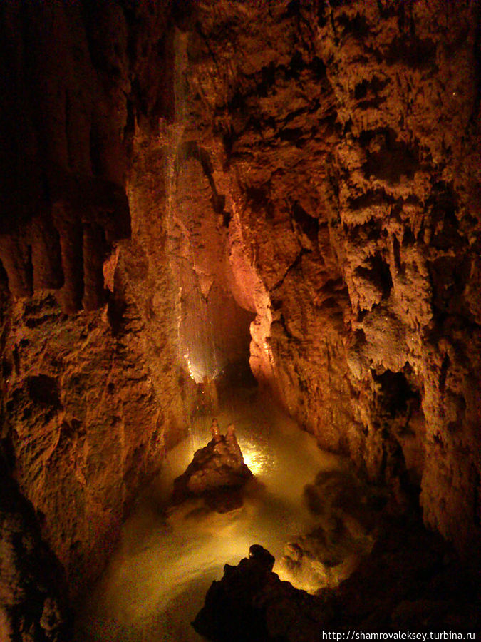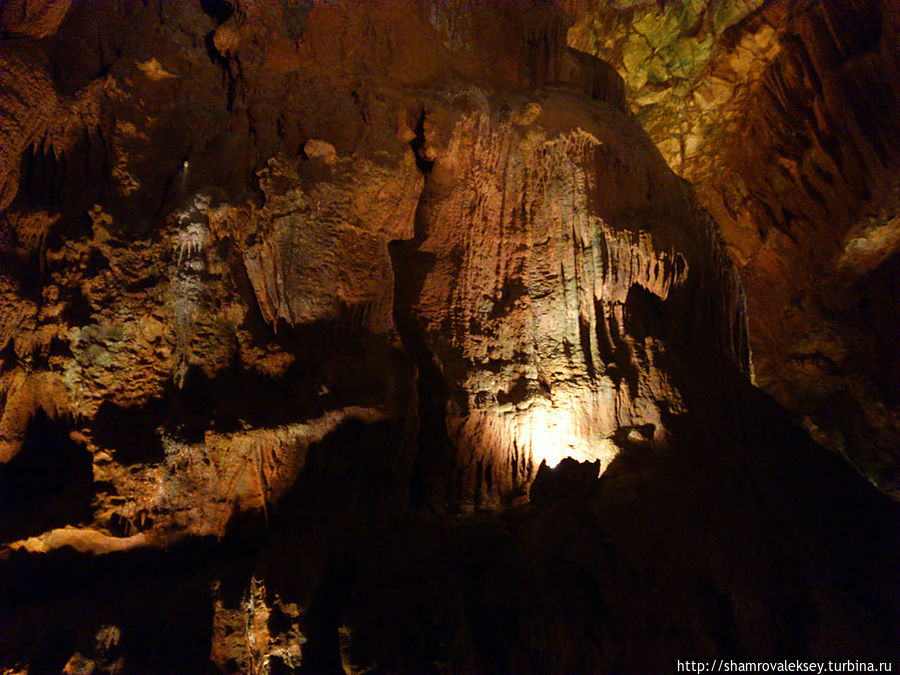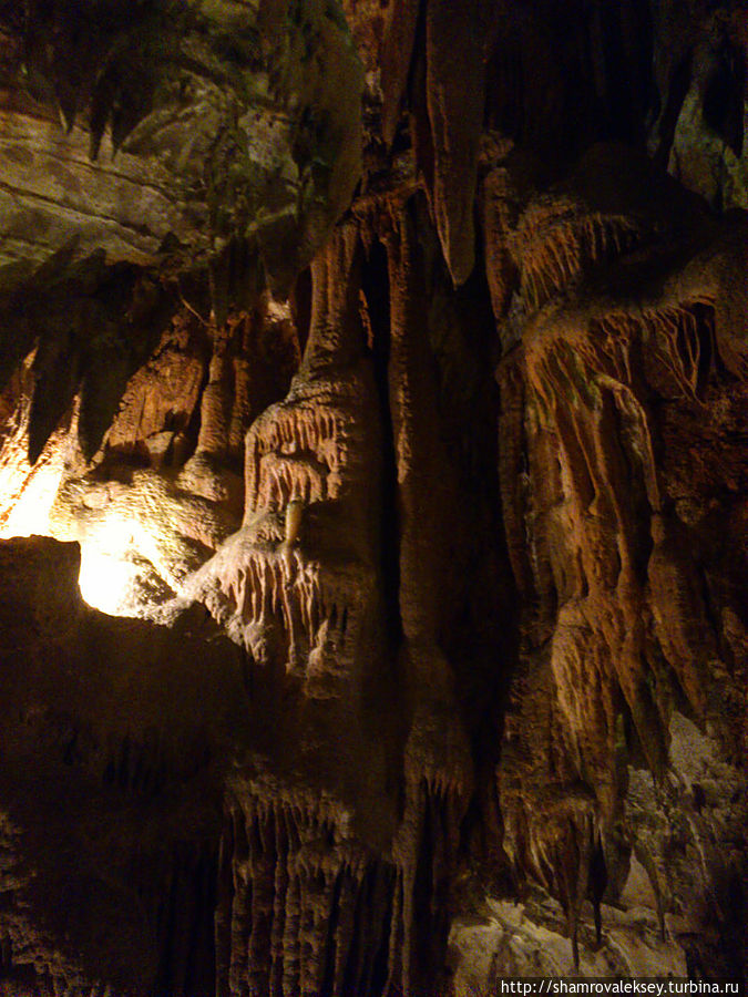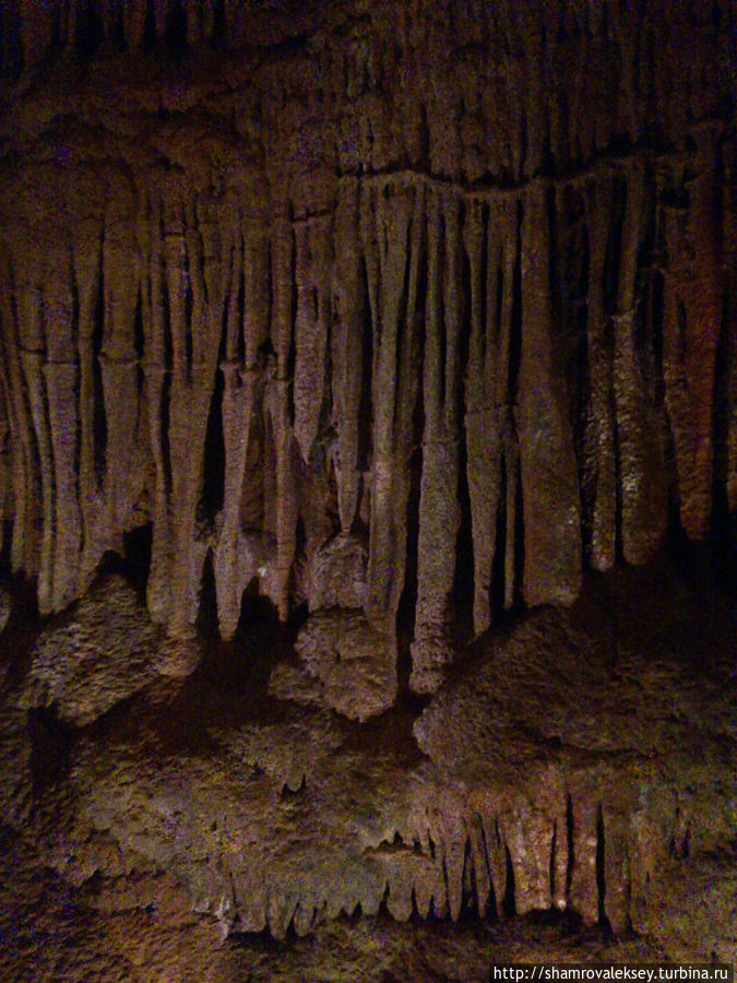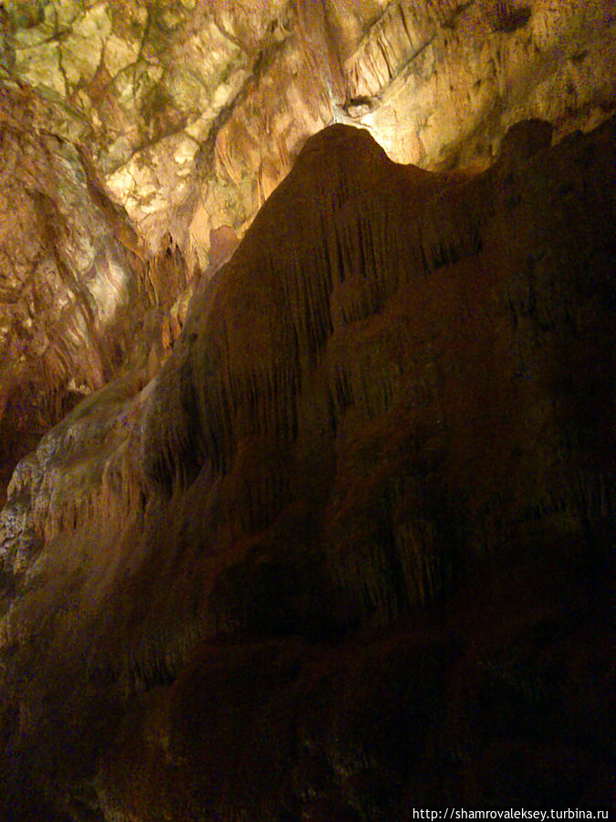 Эти красивые пещеры признанные в результате общепортугальского опроса одним из семи природных чудес Португалии опускаются в глубь Воздушных гор Мира де Айре на 110 метров. Величественное творение природы было открыто в 1947 году пастухами из одноимённого городка Мира де Айре у которых постоянно пропадали овцы. Во время очередного поиска они открыли провал вёдший в глубокую пещеру, стены и своды которой были заполнены огромным количеством разнообразных по форме и размерам сталактитов и сталагмитов. Медленно растущие друг навстречу другу минеральные отложения известняка встречали меня на всём протяжении спуска по серпантину искусственных лестниц устроенных в теле пещер. Разноцветная подсветка пещер добавляет волшебства и красочности природным структурам и фонтанам устроенным человеком в нижней части пещер ставшим истоком Чёрной реки. Общая разведанная длина пещер составляет более 10 километров, я же смог увидеть только малую часть пещер открытых для посещения с 1974 года.
