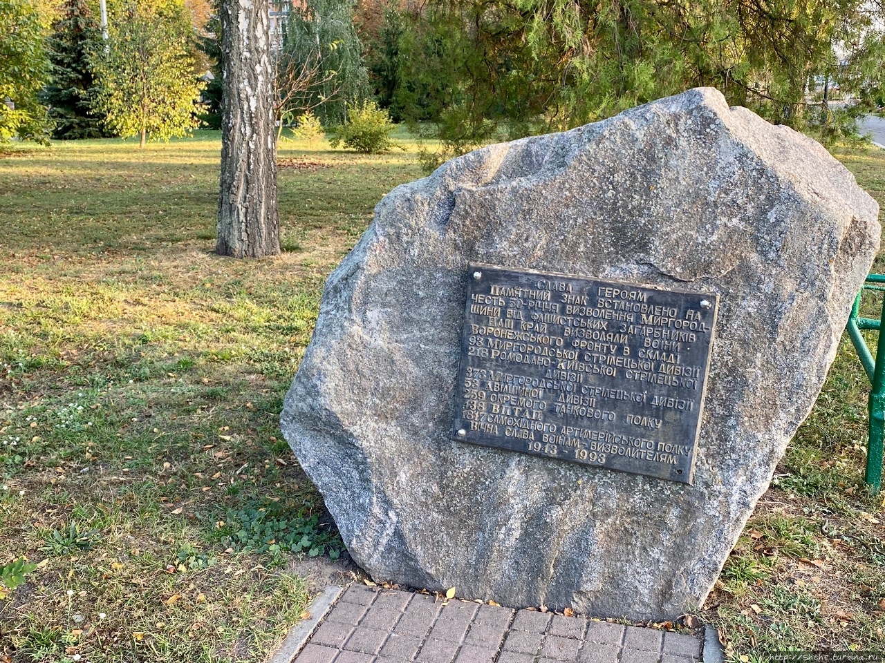 В парке, кроме прославления своих земляков-героев, были установлены памятные знаки в честь воинов, погибших за освобождение Миргорода...