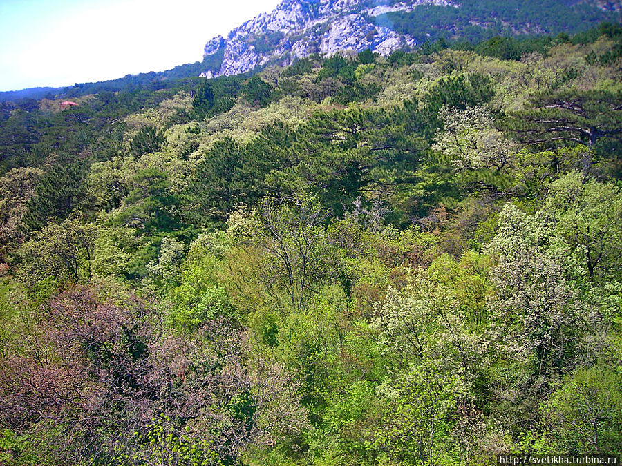 в 12 километрах от Ялты.Высшая точка всего массива — гора Рока с абсолютной отметкой 1346 метров над уровнем моря, . Сама же гора Ай-Петри много ниже — её высота 1231 метров над уровнем моря.Растительность в горах разнообразна: буковый лес, сосны произрастают почти все распространённые виды рябин.На плато я поехала на микро автобусе, обратно спускалась по канатке. Вы убьете два зайца: увидите дорогу с красивейшей растительностью,можете заехать по пути на водопад а спускаясь по канатке- все южное Крымское побережье сверку.Это непередоваемые ощущения!