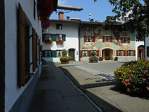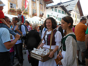 Совершенно случайно наша поездка в Миттенвальд совпала с праздничными мероприятиями, проводимыми в городе раз в четыре года. Праздничная атмосфера добавила необычайный колорит и без того прекрасному уголку земли. Город составляют старинные "пряничные" домики, некоторые из которых украшены снаружи росписями на библейские сюжеты. Жители основательно подготовились к празднику. Достали национальные одежды, переходящие из поколения в поколение, подготовили театрализованные представления и музыкальные номера, создали на старинной площади настоящую ярмарку местных ремёсел, товаров и еды.