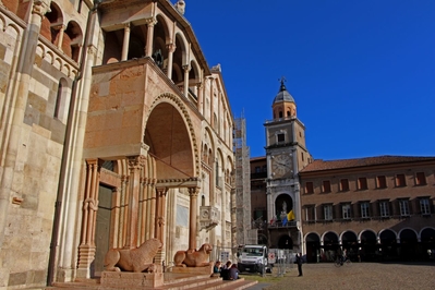 Великолепный собор XII в. в Модене работы двух больших художников (Ланфранко и Вильгельма) является наилучшим примером раннего романского искусства. Вместе с Соборной площадью и вздымающейся над ним башней собор символизирует твердую веру строителей и подтверждает могущество династии Каносса, которая заказала его строительство. (whc.unesco.org/en/list/827).