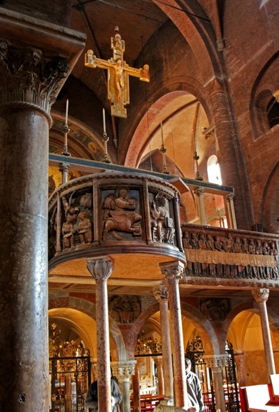 Здесь расположена кафедра, сделанная Энрико да Кампионе в 1322 году.