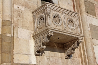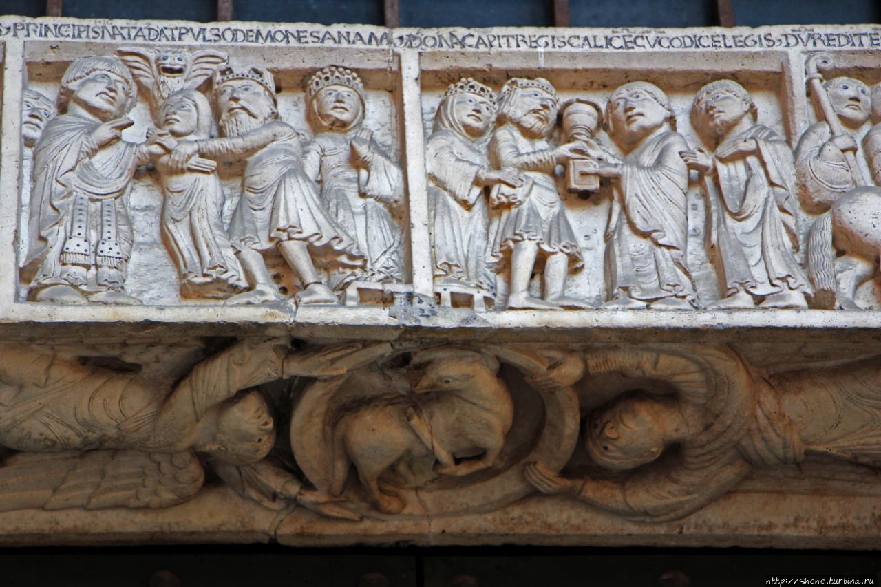 Но здесь мы можем наблюдать оригинальную отделку фасада и великолепные скульптуры, сделанные в мастерской Ланфранко в первые два десятилетия 12 века.