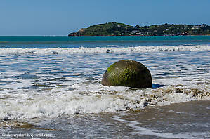 Фотография одного из этих булыжников красовалась на обложке нашего путеводителя. То есть это, можно сказать, визитная карточка Новой Зеландии :-) Нет, булыжники очень симпатичные. Расположены удобно, прямо у дороги (проход через ресторан по частной тропинке, за которую просят пожертвование в 2, что-ли, доллара). Но имейте в виду, что если в момент вашего посещения будет высокий прилив, то вы либо не сможете подойти к камням, либо промокнете с ног до головы.