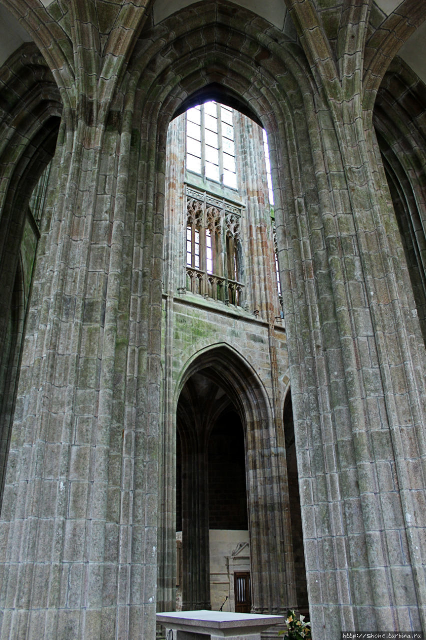 Но и здесь Мон Сен-Мишель имеет свою неповторимую изюминку — клуатр, двор и крытая галерея есть в каждом старом монастыре, но итут его составляют изящные колонны с алебастровыми резными капителями и фризом, где виноградные листья сменяются дубовыми, а те — побегами плюща, и так далее, меняясь над каждой колонной и ни разу не повторяясь.