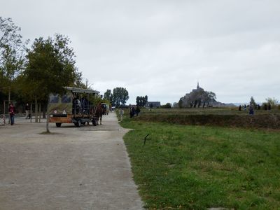 На конном экипаже Maringote, запряженном лошадьми, можно доехать до подножия острова Мон-Сен-Мишель через мост примерно за 25 минут.