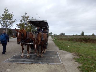Все автомобили, туристические и рейсовые автобусы не доезжают до острова Мон-Сен-Мишель, останавливаясь на парковке перед туристическим поселком La Caserne: