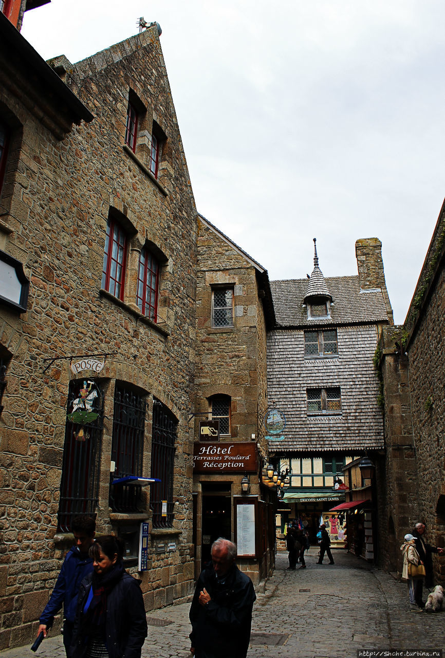 Главной достопримечательностью Мон-Сен-Мишель является одноименное бенедиктинское аббатство, к которому и ведет эта узкая улочка.