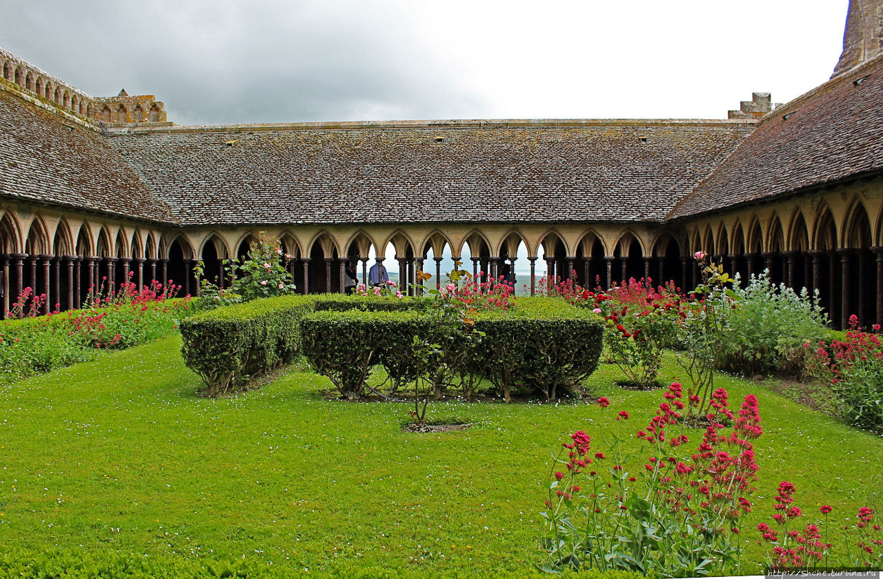 Стоя на ней пожалуй стоит пару слов сказать об истории этого места. До 8 века эта гора имела название Могильной (Mont Tombe), пока архангел Михаил не приказал местному епископу построить здесь церковь. Работы по возведению здесь монастыря с переменным успехом и паузами на войны велись с 9 по 16 века. Так произошло, что с окончанием строительства в1520 году в связи со смертью настоятеля аббата Жана де Лампа в 1524 монастырь начал постепенный упадок, и уже в началу Великой Французской революции он оказался почти заброшенным, что, впрочем, спасло его от разграбления. Окончательно монахи покинули Мон-Сен-Мишель в 1791 году. До 1863 года монастырь использовался в качестве тюрьмы, нося при этом ироничное название Гора Свободы (Mont Libre). А в 1874 году остров был провозглашен памятником истории, через три года к нему отсыпали дамбу... Только в 1969 году в помещения аббатства вернулась община бенедиктинцев, насчитывающая в настоящее время 7 человек.