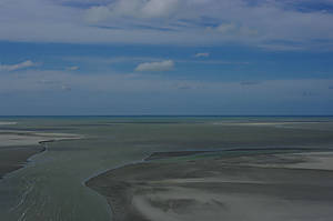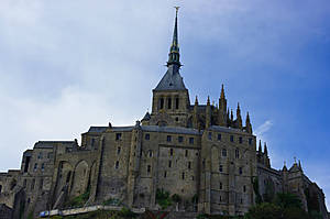 Во-первых — нам не особо повезло и мы попали именно на отлив. Когда тонкая полоска воды виднелась где-то вдали. Особо, конечно, на архитектуру это не влияет. Но перед поездкой аббатство нам представлялось этаким непокорным великаном средь водной стихии..