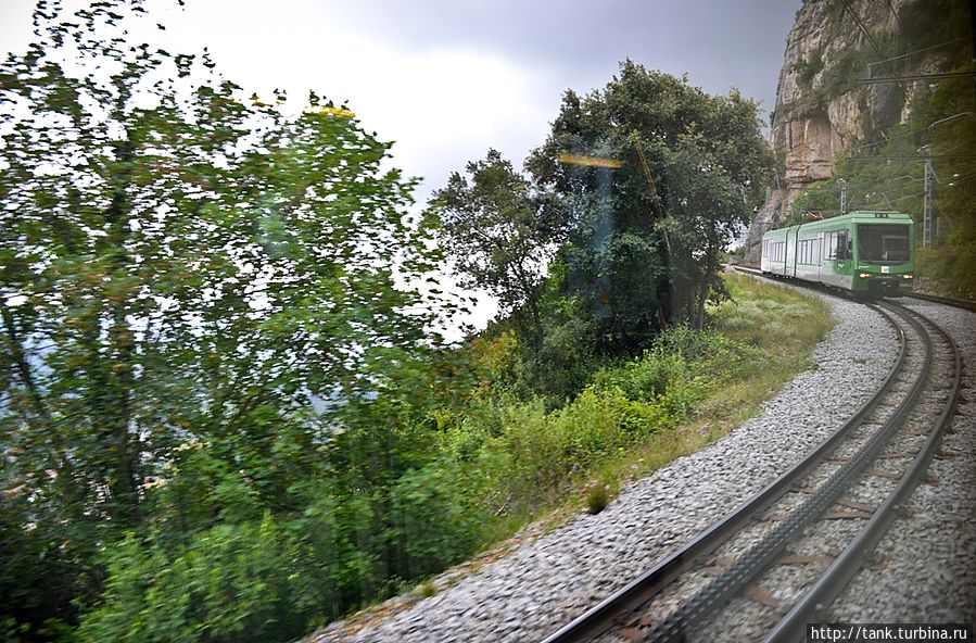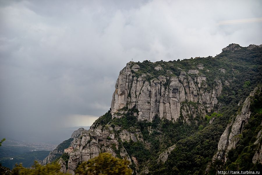 Дождь сделал паузу, но тучи и облака все также окутывали вершину зубчатой горы. Посмотрев на небо, с которого в любой момент могло хлынуть, решено было подниматься выше. Фуникулер San Joan, заполнился туристами и стал медленно карабкаться в гору. Пассажиры изучали окрестности через стеклянную крышу, но в какой-то момент, вагончик въехал в облако, которое плотной пеленой окутало его.