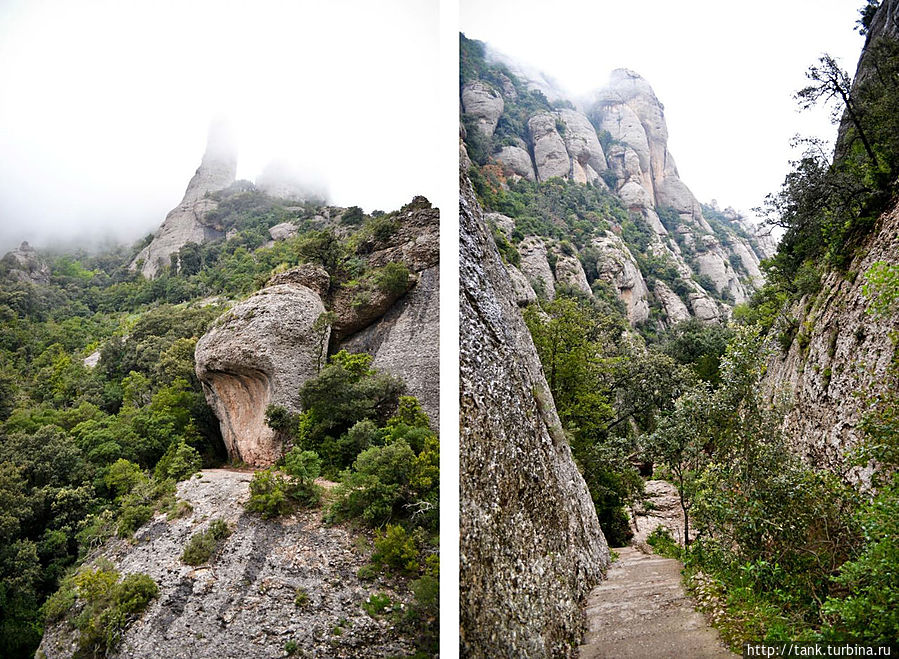 По мере спуска, когда облака и тучи остались на верху, показались очертания монастыря. К большому сожалению, в этот раз не получилось увидеть Монсеррат во всей красе, освещенный лучами света, пред нами он предстал, в загадочной туманной пелене, в чем, наверное, был свой шарм.
