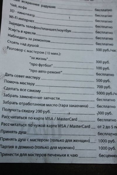 Очень рекомендую ознакомиться с инструкцией общения клиента с мастером пункта ремонта. Замечательный во всех отношениях документ. Строгий, но справедливый. Почитайте, чтоб потом не было вопросов, почему так дорого.