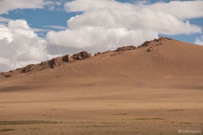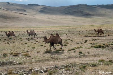 Долина казалась абсолютно безжизненной. Но это впечатление обманчиво. На обратном пути мы обходили Ачит с запада, там, где в него впадает река Бехмерен-гол, и увидели притаившийся за горной грядой сум, и увидели россыпь юрт, спрятанных в довольно высоких деревьях. Вообще, всю поездку меня не покидало ощущение, что я нахожусь на краю мира, что кругом пустота и безлюдье. Но это не так — в каждом уголочке страны есть жизнь. Ты едешь по глуши и видишь стадо, значит, сейчас за поворотом ты увидишь юрты, а около них будет стоять крузак или уазик или портер, солнечная батарея, а на юрту будет прицеплена спутниковая антенна. Там, где есть вода, есть жизнь. Даже в пустыне частично сохранились скважины, пробуренные ещё видимо в дни братской любви с СССР, потому что только на генштабовских картах они и обозначены.