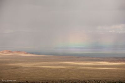 Эра сломанной сошки сменилась эпохой продубаса. В стремлении нагнать время, мы режем углы на нитке маршрута. Сейчас мы от Цагааннуура – унылого приграничного посёлка, где под колёса бросаются чумазые дети с настойчивым требованием их чем-то угостить – ушли в горы по дорожке, обозначенной только на старых генштабовских картах. Дорожка ведёт нас по степи, затягивает на перевалы, заставляет стрелку температуры ползти вверх. Она выводит нас в узкое извилистое чрезвычайно живописное ущелье. А потом она выплёскивает нас в долину озера Ачит. Ачит лежит от нас по левую руку. Над ним – радужный столб – что-то среднее, между радугой и северным сиянием. Мы обходим озеро с востока. Я видел уже такое. В каких-то фильмах. Там были индейцы, а может, ковбои или наркодельцы. Дело было в Южной Америке. Именно такой пейзаж открывался нам: на фоне синего озера и тёмных далёких хребтов горбились гряды терракотового цвета, рыжела песчаная почва и разбегались кусты акаций.