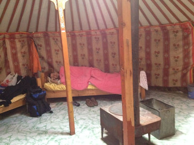Эту ночь мы снова провели в юрте. В этот раз наш отель был с интернетом и видом на город. Мы были довольны, что посетили ещё один город мира и также нам понравился Амга.