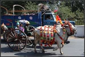 Автобус местный отличный, тоже 2000 стоит. 3 часа. По пути встретилась офигенная свадьба. Как в сказке Морозко, только процессия едет не на упряжках из свиней, а на богато декорированных разноцветными бубенчиками буйволиных повозках. Позже оказалось, что это не свадьба, а процессия, приуроченная к пожертвованиям Будде. Все равно красиво.
