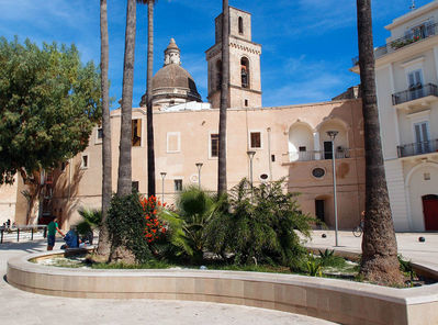 Chiesa Basilica Cattedrale e Santuario «Maria SS. Della Madia»Площадь перед собором выглядит очень величественно и одновременно уютно, благодаря необычному сооружению высотой 33 метра, примыкающему к собору слева от главного входа.