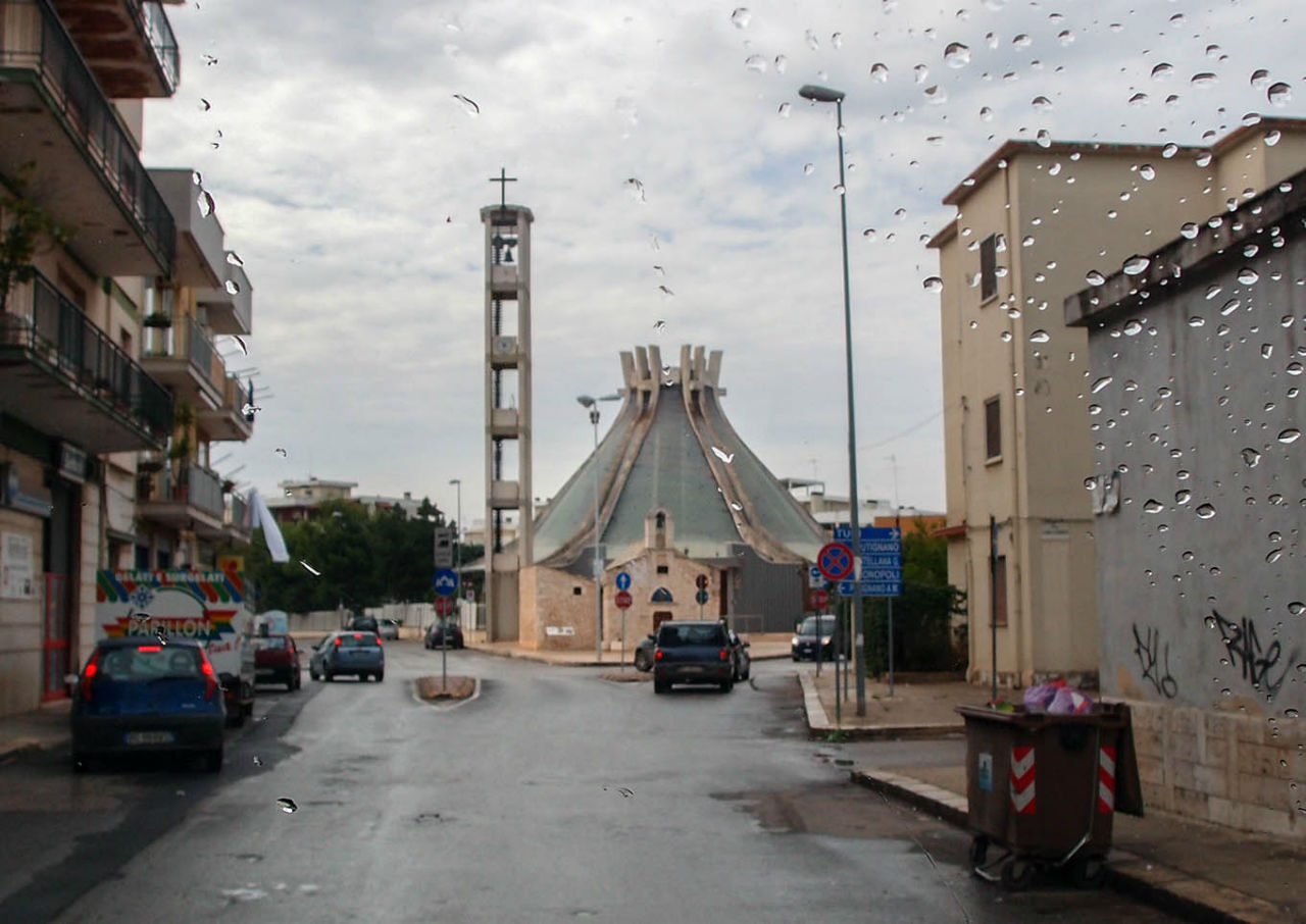Надеюсь, вы ещё не устали от прогулки? Мы ведь не успели побывать и в десятой части храмов Монополи ;-) Напоследок заглянем-ка в самую необычную из ста церквей — достаточно новую, 1978 года постройки, церковь Святого Сердца.