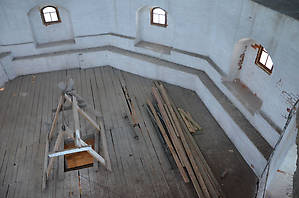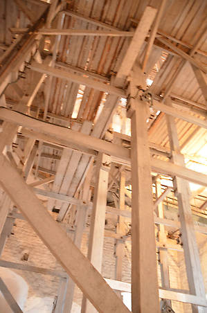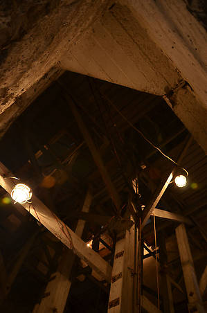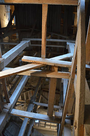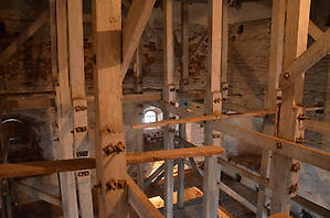 Внутри башни — совершенно невообразимые конструкции из лесов...