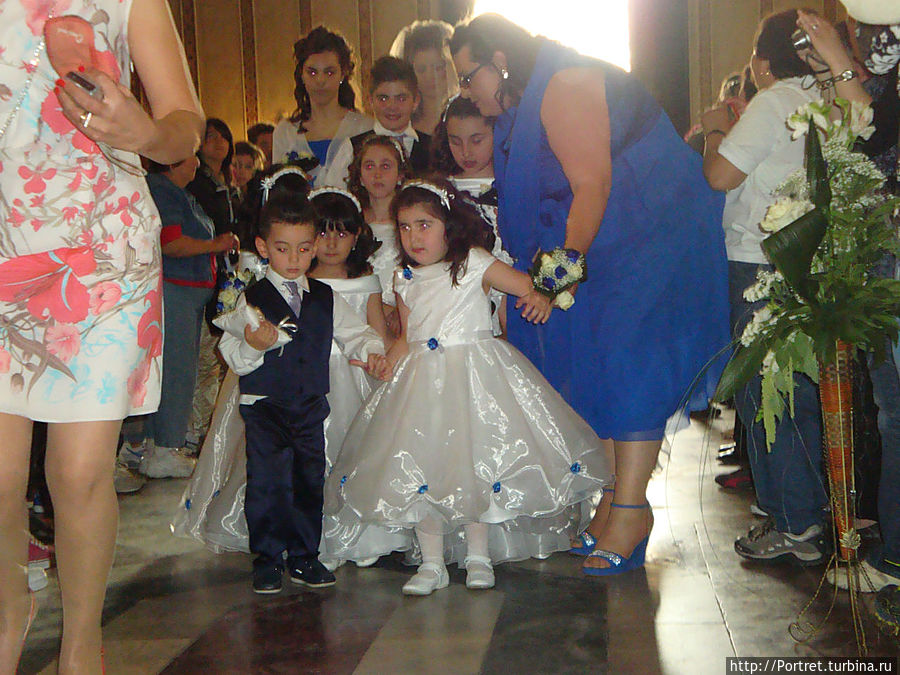 Узкие улочки Монреале сходятся на площади с фонтаном перед собором Санта Мария Нуова. Любопытство заставило заглянуть внутрь и восхититься древними мозаикой, картинами и скульптурами. Вообще, соборам Италии характерны богатство убранства. Каждый из них — это своеобразная галерея произведений искусства. В тот день туристам посчастливилось стать свидетелями венчания. В принципе, все как у нас в Украине. Жених в черном. Невеста в белом. Стайка ребятишек, следующая в фарватере процессии и, судя по выражению их лиц, не до конца понимающих необходимости своего здесь присутствия. Родители брачующихся охотно позировали фотографирующим их туристам. После венчания счастливую пару к новой жизни укатил длиннющий лимузин белого цвета. В общем, мило и трогательно.